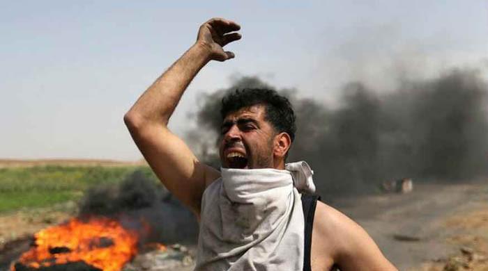 A Palestinian shouts during clashes along the Israel border with Gaza ahead of a protest in a tent city, demanding to return to their homeland, in the southern Gaza Strip on March 29, 2018. Photo: ReutersA Palestinian farmer was killed in Gaza by...from GEO TV - World https://ift.tt/2GmPAc0